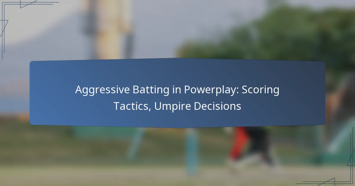 Aggressive batting in powerplay is a strategic approach where batsmen seek to score runs rapidly during the initial overs of a limited-overs cricket match. This tactic not only sets the tone for the innings but also significantly influences the game’s outcome. By focusing on shot selection, field placements, and effective running, teams can maximize their scoring potential, while umpire decisions regarding no-balls and wides can further impact their strategy and scoring opportunities.